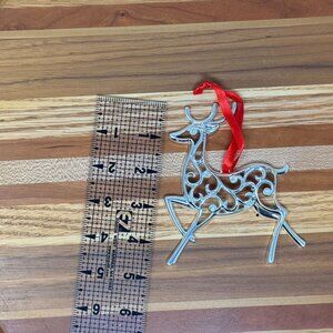 Lenox Sparkle Silver-Plated Reindeer Ornament Clear Crystals Red Ribbon