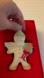 Features: The gingerbread man is holding a blooming poinsettia and has a peppermint candy on his hat.