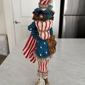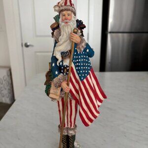 Made in USA! This Lenox "Star Spangled Santa" stands an unusual height of 13". (some are 11") So this makes it the more valuable display edition. No box, but it's in very good condition. Porcelain material and 24k gold trim.