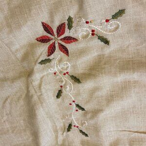 Lenox Tablecloth Christmas Poinsettia Linen Blend Rectangle ~80x57 Scallop Edge. Embroidered design.