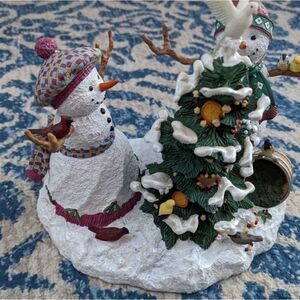 Experience the magic of the holidays with the LENOX - DESIGNED BY LYNN BYWATERS FROSTY COLLECTION "TOGETHER AT CHRISTMAS" SCULPTURE. Standing at approximately 7 1/2" high, this enchanting sculpture captures the heartwarming scene of male and female frosty snow people joyfully decorating a stunning Christmas tree amidst a whimsical outdoor winter wonderland. Every inch of this masterpiece is adorned with intricate details, from the charming hats the wear to the delightful little birds scattered about. Look closely and you'll spot a dove perched atop the tree, while the decorations are cleverly crafted as bird food. Get ready to be enchanted by this delightful holiday treasure that will bring joy and festive cheer to your home!
