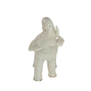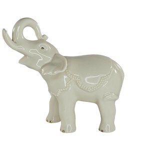 This Lenox Touch of Luck Elephant Figurine Trunk Up is a beautifully crafted porcelain piece. With intricate detailing and gold accents, it's the perfect blend of elegance and whimsy for any home decor.