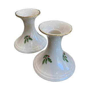 Lenox Traditional ivory Holly Berry Candle Holder Candlesticks