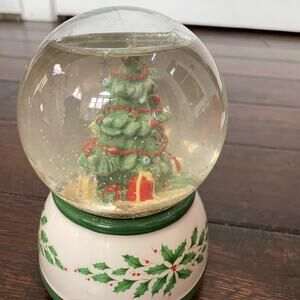 Vintage Lenox snow globe with porcelain base decorated with holly