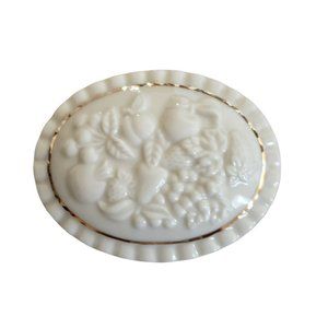 1998 Lenox Fine China "Fruits of Life" ivory colored lidded trinket box.