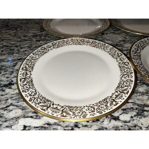 Lenox Tuscany Dinner Plates Gold Scrolls Birds 10 3/4" Ivory Set of 4