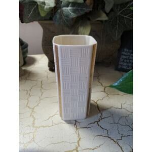 Lenox Vase Square Ivory & 24k Gold Woven Design 6.5" X 2.5"