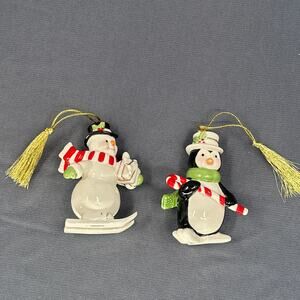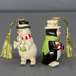 Lenox Very Merry Porcelain Ornament Set of 2 Snowman Penguin Holiday Christmas