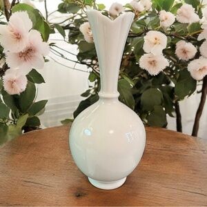 Lenox Vintage Bulb Bud Floral Flower Heart Top Vase 8" Made USA Ceramic Flute Neck