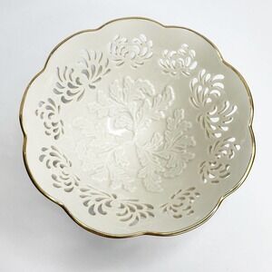 Lenox Westbury Collection 8" Embossed Pierce Porcelain Bowl Coordinates with Eternal. In wonderful preowned condition. Please view (zoom in) photos for a visual description. Ships fast, a completely smoke-free environment. 8" Wide, other measurements are in photos. No cracks, chips, or repairs.