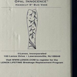 This 9 inch full lead crystal bud vase is from the Lenox Opal Innocence Collection.