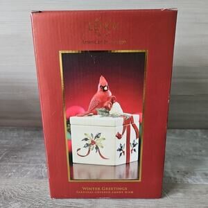 Lenox Winter Greetings Cardinal Covered Candy Dish 7 in Tall in Box 815847
