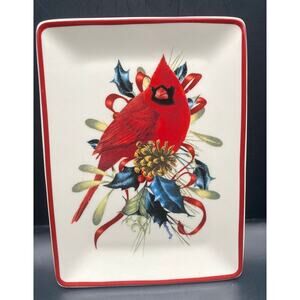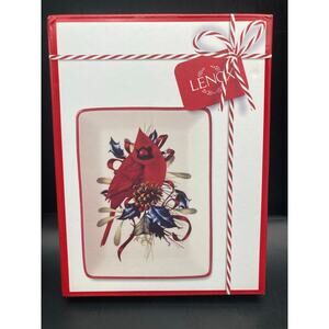 Lenox Winter Greetings Spoon Rest Tray Cardinal Red Blue Gold 6.5x5 NIB