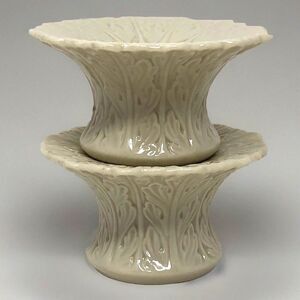 Vintage Classic Lenox Woodland Collection Candlestick Holders in Ivory Embossed Elegant design. Made in the USA.