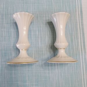 Lenox classic flutted candlestick holder pair ivory with gold trim used