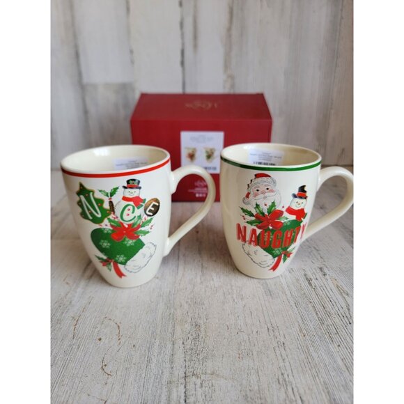 Lenox holiday 14oz naughty nice mugs Xmas home decor set