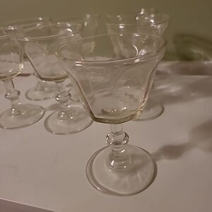 Pre-owned in good condition. Vintage clear.They are just under 5 inches tall and have a diameter of approximately 3 inches..Set of 7.