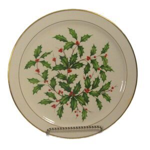 Add timeless elegance to your holiday table with this Lenox Holiday Round Platter. Featuring the classic holly and berry motif with a gold rim, this discontinued piece is perfect for serving festive meals or displaying as part of your Christmas décor.