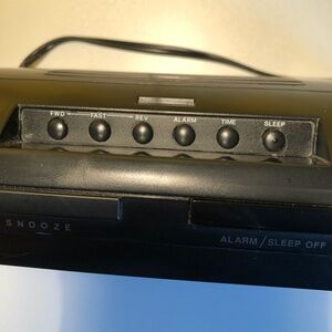 Large, digital numbers for easy reading. AM/FM clock radio with battery backup (no battery included, but takes a 9v). 9.25" wide x 4.25" deep x 5" high. Snooze and sleep functions. 2 dimmer settings. 2 alarm settings. Does not come with a manual.
