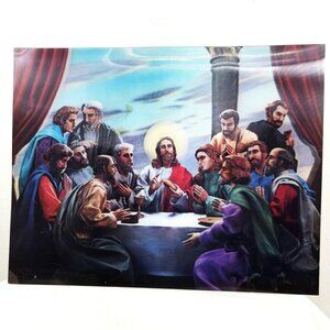 Lenticular 3D Jesus Last Supper Apostles Religious Print Vintage