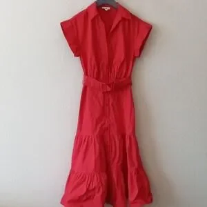 short cuff sleeve belted shirt dress