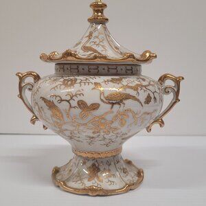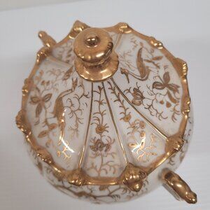 Lenwile Ardalt Lidded Tureen/Bowl Porcelain Gold 6428 Vintage Japan Peacocks