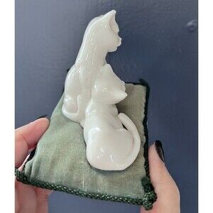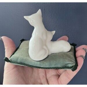 Lenwile Ardalt Pin Cushion White Porcelain Cats on Green Velvet Pillow Siamese