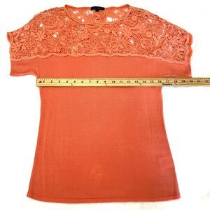 Leo Guy Women's Peach Lace Top Short Sleeve Stretch Soft T-shirt Top Sz 1/6-8 US