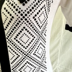 Leo Guy Womens Top SZ S Knit White Black Embellishments Short Sleeve Sweater