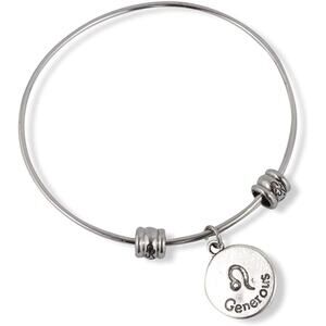This Leo Horoscope Astrology charm bracelet is perfect for the Horoscope lover. A great gift for a student of astrology or someone who just loves Leo Horoscope Astrology Symbols. This adjustable stainless steel bangle has beautiful scrolled wrist protectors. Fashionable for any occasion and can be worn with any outfit or suit.