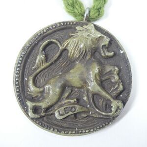 Leo Lion Zodiac Pendant Handmade Clay Vintage Green MCM