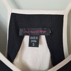 Excellent condition, Small black and white Leo Meets Virgo halter v neck pleated high low dress