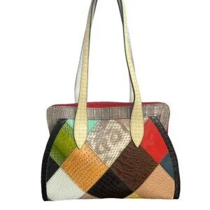 Leo Monk Genuine Leather Patchwork Comic Handbag NWOT