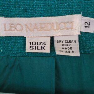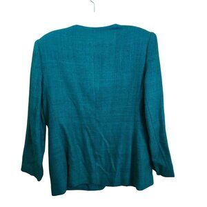 Leo Narducci Vintage Teal 100% Silk Single Breasted Collarless Blazer Size 12
