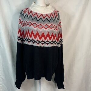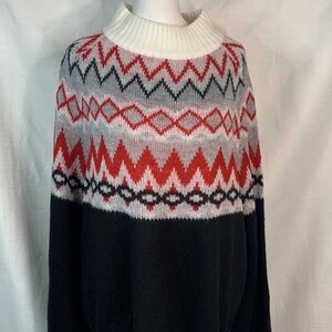 Leo & Nicole Black and Red Mock Turtleneck Fair Isle Sweater- NWT