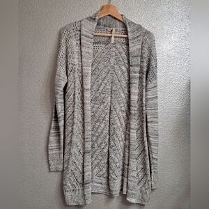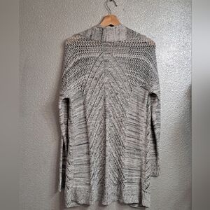 gently used I excellent condition, open knit cardigan in shades of grey, pit to pit 19" sleeve 19" length 27"