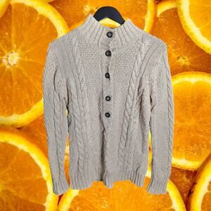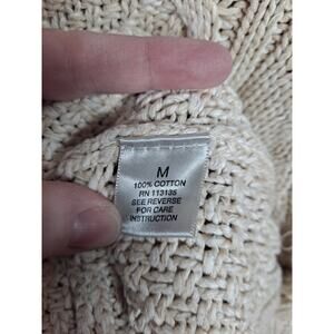 Leo & Nicole Women's Cotton Beige Cable Knitted Mock Neck Sweater Size M