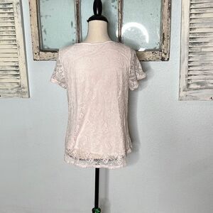 Leo & Nicole Women's Blouse Short Sleeve Lace Top White Size Extra Large