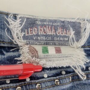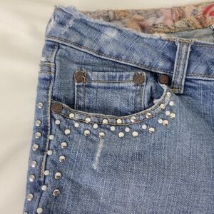 Leo Roma Juniors Jeans 7 Low Rise Capri Womens Studded Distressed Blue Denim