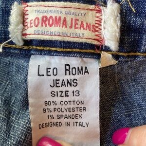 Leo Roma Vintage Denim Cropped Distressed Jeans with Rhinestone Butterfly Accents Sz 13. 23” inseam. Good condition.