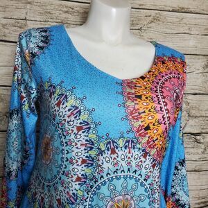 Leo Rosi Sky Blue Mandala Print Dress Size Medium