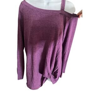 Leo Rosi soft heather purple off shoulder long sleeve top knotted waist hem Med