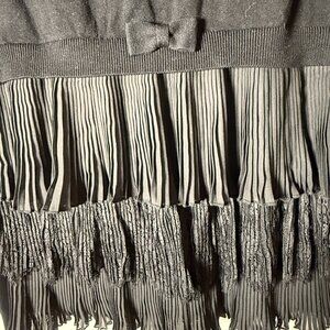 Leo & Ugo Black Back Ruffle Detail Button/Snap Front Cardigan Front Pockets Sz 4