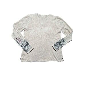 Made from a knit fabric with a blend of nylon and rayon, this sweater is both comfortable and durable. The embellished details, including beading, a bow, and embroidery, add a touch of designer flair. The graphic print depicting the Eiffel Tower and a hot air balloon adds a bohemian and preppy vibe. This sweater is a true work of art and is sure to turn heads. Great preowned condition.