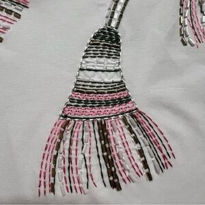 Nice and chic women's top featuring intricate pink embellishments. Perfect for adding a touch of style to any outfit.