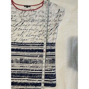 The Leo & Ugo Short-Sleeved White, Red, and Blue Tee in size 3 is a classic and versatile addition to any woman's wardrobe. Made from comfortable cotton knit fabric, this tee features a round neckline, pullover closure, and short cap sleeves. The bold blue accents with a pop of red add a stylish touch, making it perfect for casual occasions during the summer, fall, and spring seasons. Hand wash only to maintain its quality, this tee from Leo & Ugo is a basic yet trendy choice for everyday wear.