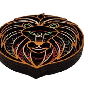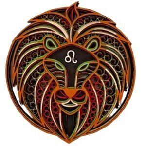 Leo Zodiac Sign Layered Design. Refrigerator magnet. Made of Bass wood. 3" round. Hand made. Hand painted. Comes with magnet.