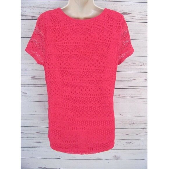 Leo and Nicole Women's Ladies' Lace Top Coral Pink US Size M Short Sleeve NWOT