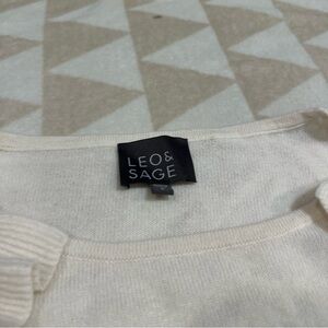Leo and Sage ivory sleeveless ruffle front cashmere top
