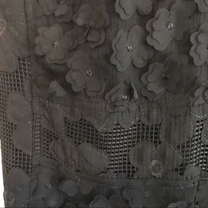 Leo and Ugo black dress with sewn on flowers in the front and mesh fabric at the top, cap sleeves, waist and sides. Fun sexy and sweet at the same time.